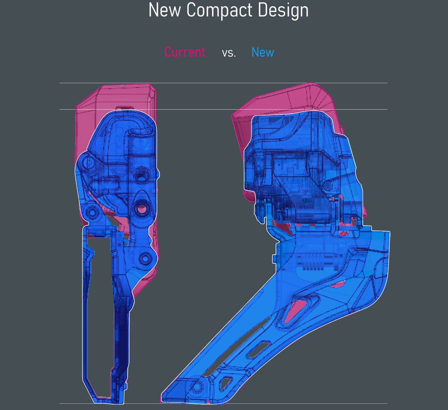 - Area di attacco frontale del deragliatore ridotta del 33%